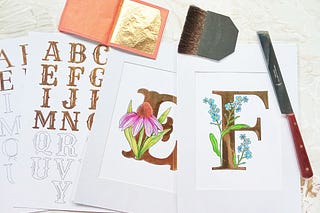 Playing with the Alphabet, Botanicals, Watercolor and Gold!