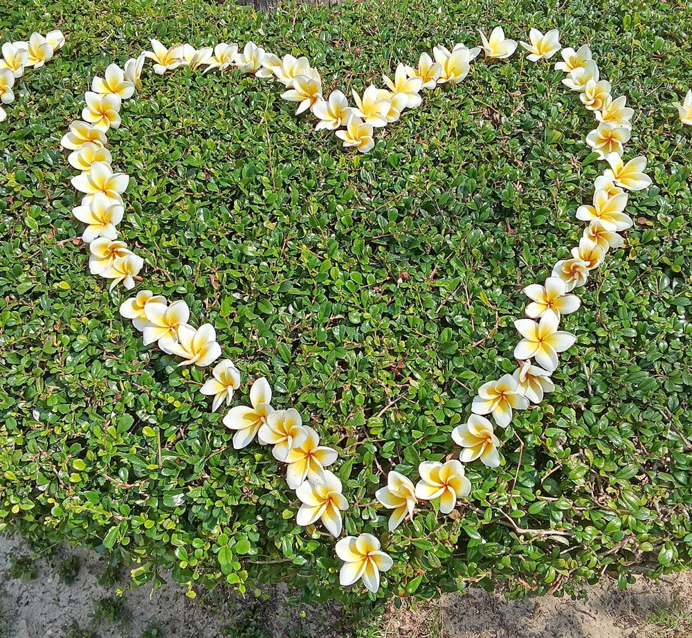 One morning I was lucky enough to see a gardener meditatively picking up the fallen blossoms of frangipanis and gently laying them out to create a heart shaped offering for guests to enjoy.