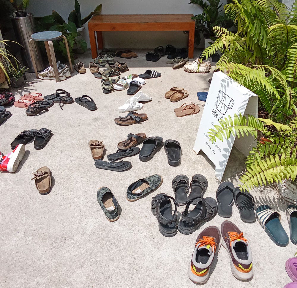 Above: A frequent scene along the street as everyone leaves their shoes and sandals by the front door.